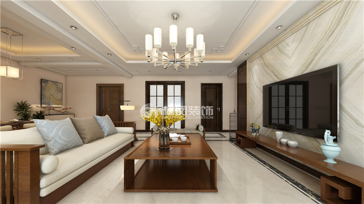 (图为旭辉璟宸府135㎡中式风格客厅装修效果图)