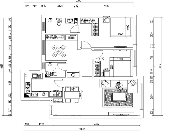 三室两厅一厨两卫,高层整体采用美式风格,色调以深色为主,体现美式的居家感和温馨感。