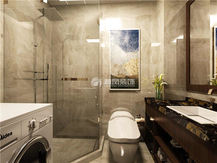 灰色的大理石瓷砖,时尚又高贵。灰中带米的色调,让空间又温馨又时尚。
