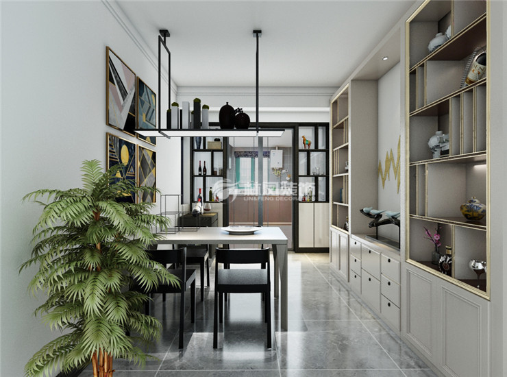 厨房把原始隔断墙拆除.用整体现在酒柜来做隔断 既体现现代家具简洁,实用性也体现现代社会追求的精致和个性。以传统文化内涵为设计元素,去掉多余的雕刻.