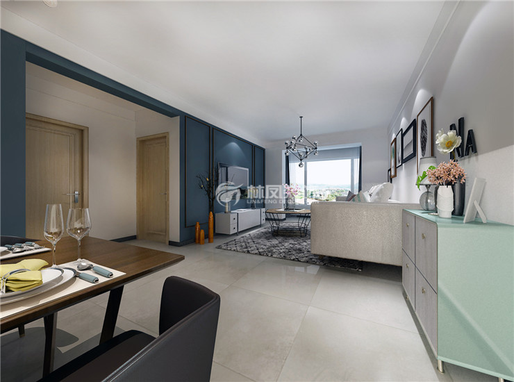 三室两厅一厨两卫,高层整体采用美式风格,色调以深色为主,体现美式的居家感和温馨感。