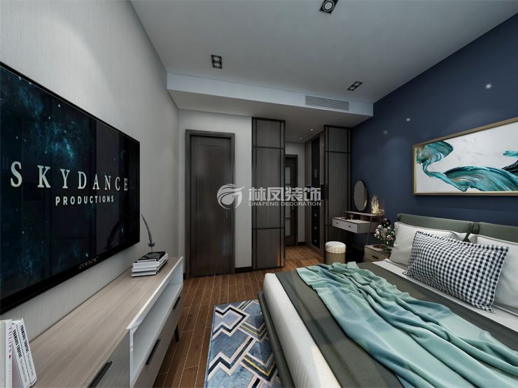 三室两厅一厨两卫,高层整体采用美式风格,色调以深色为主,体现美式的居家感和温馨感。
