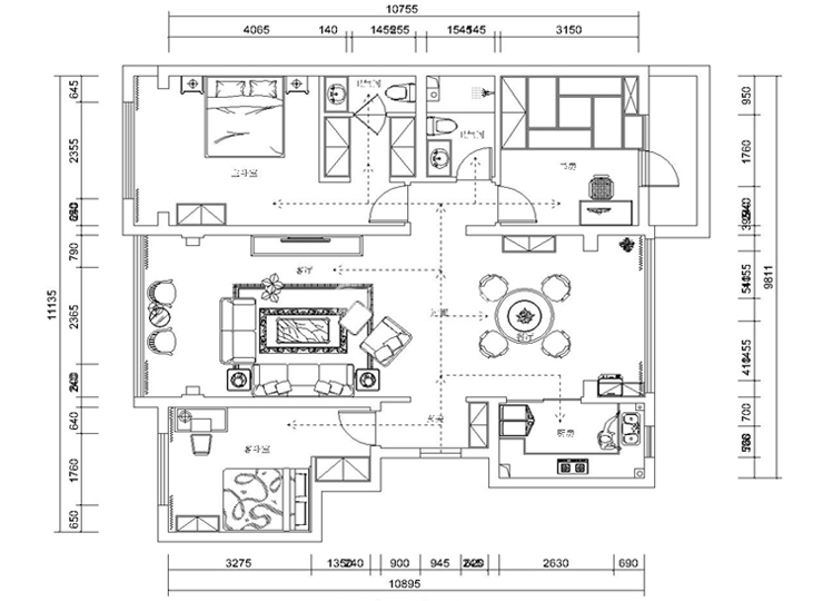 三室两厅一厨两卫,高层整体采用美式风格,色调以深色为主,体现美式的居家感和温馨感。