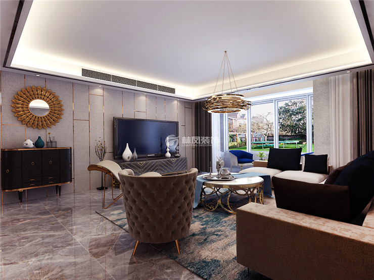 三室两厅一厨两卫,高层整体采用美式风格,色调以深色为主,体现美式的居家感和温馨感。