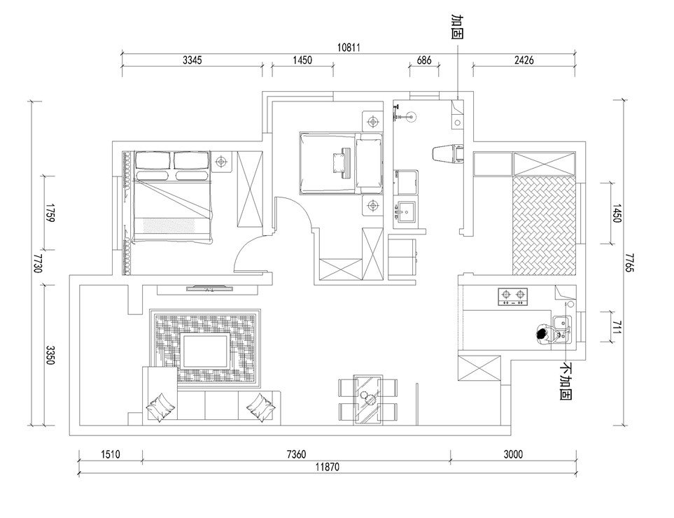 主卧室说明: 业主想要一个独立的衣帽间,所以对主卧进行了拆改,最大化的利用了空间;次卧室说明:简单的卧室,没有过多华丽的装饰,也没有过多的色彩点缀,但是却能在简单的设计中演绎出个性的特质。衣柜柜门选择移门不占用床边过道的空间,方便使用