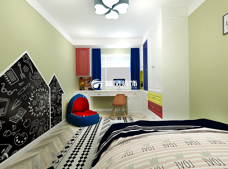 看似简单的主卧室却能体现出设计师用心,就连挂画都选择小宝宝作为主题,舒适的色彩选择让空间变得更加有温度。