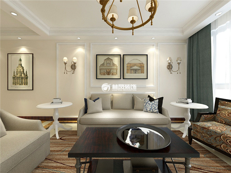 设计理念:本案以简美风格设计,整个设计主体颜色是米白色,为让视觉效果更加的开阔。简约的美式家具让空间增加温馨优雅的感觉。