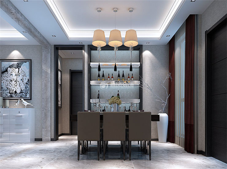 餐厅结合原有建筑结构设计了饰品柜为空间增添色彩。