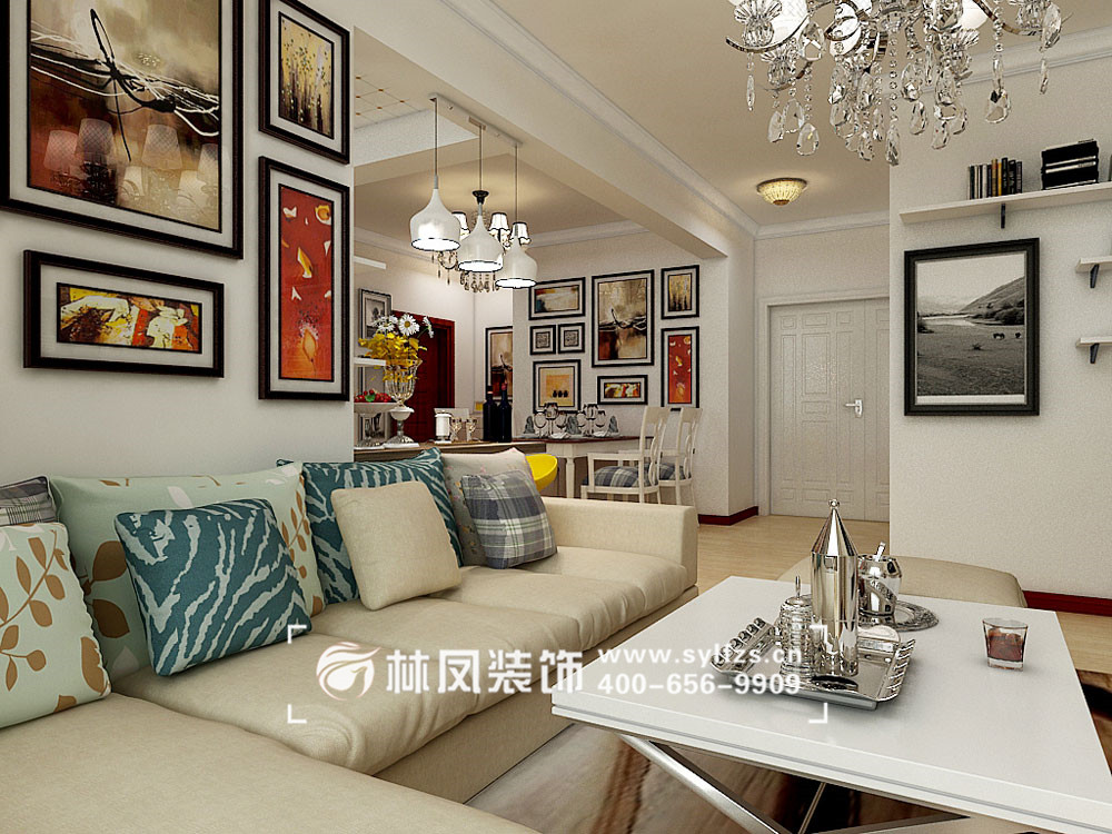 整个客厅空间,暖黄色的沙发,搭配清新的抱枕,简洁的茶几,完美的将时尚与古典融合,白色的电视柜,米色的壁纸,使空间更为温馨。简洁融合,营造出假的温情感!
