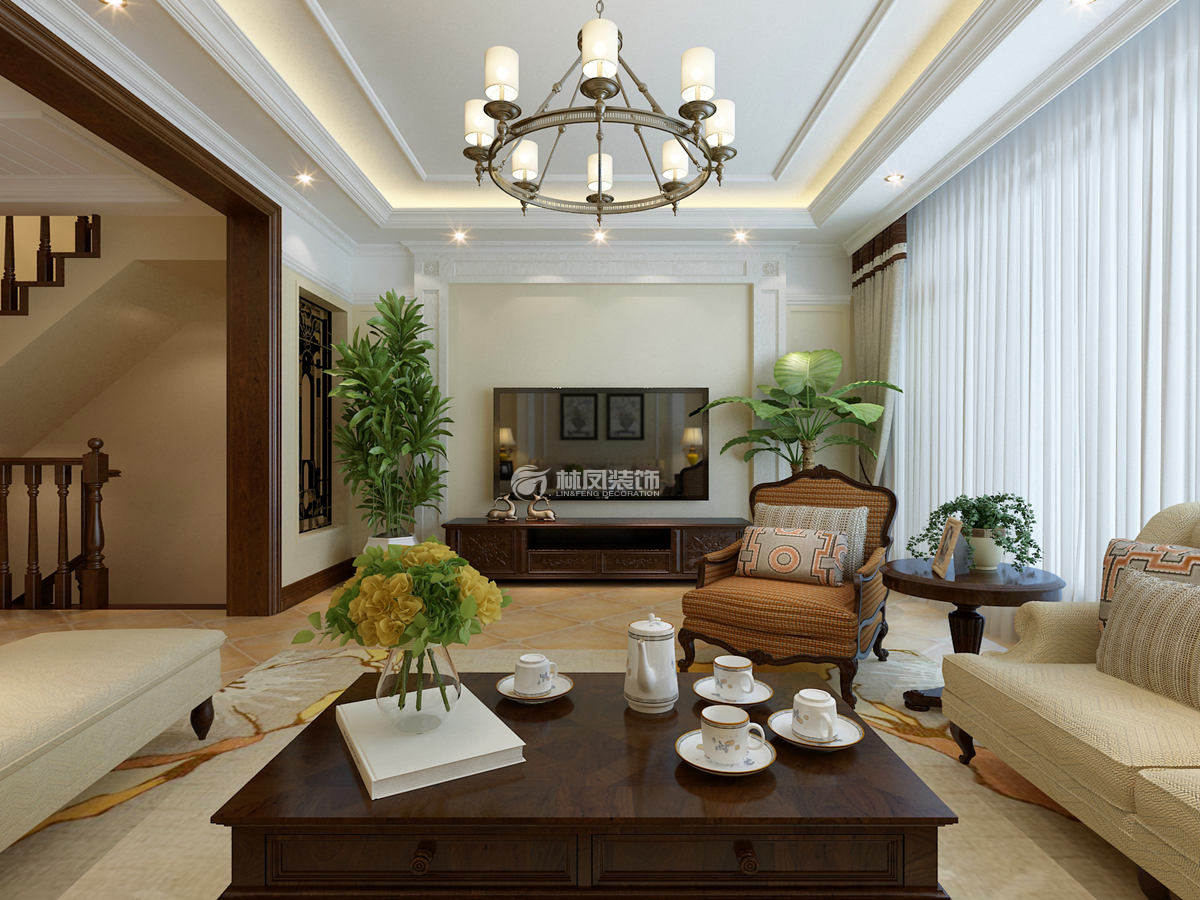 美的庄园320平平别墅美式风格林凤装饰的休闲区