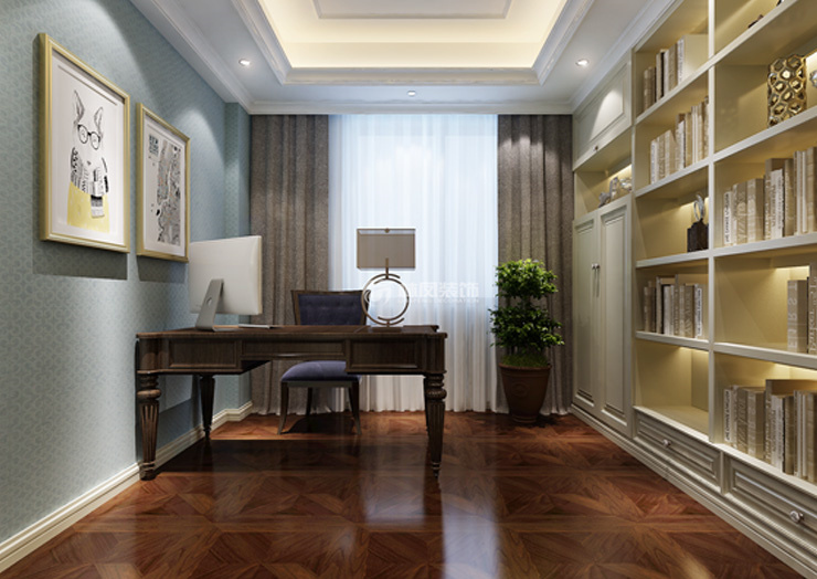 万科金色156平3居室简欧风格林凤装饰的卧室空间大气简洁 风格明显 暖色壁纸装饰及拼花实木地板的铺贴,让卧室温馨舒适。