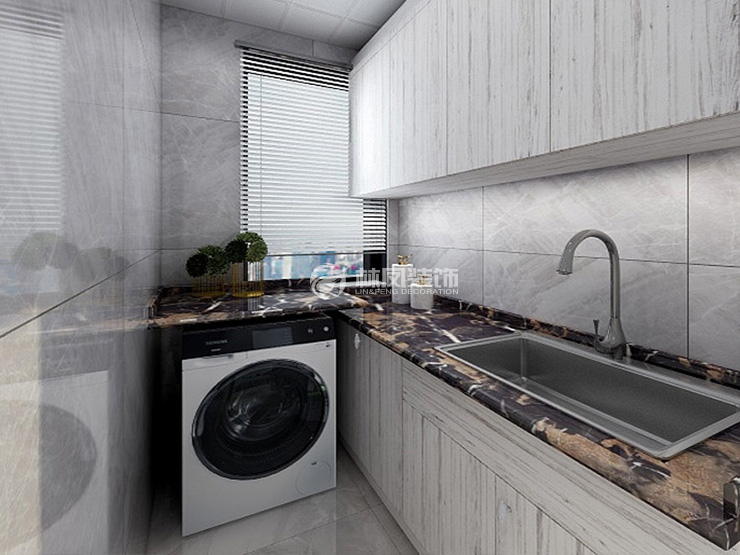 碧桂园御长白95平3居室现代简约风格林凤装饰的厨房是封闭式厨房,由于空间有限,所以整体选用白橡木,让整个空间视觉放大,瓷砖运用对比灰色,高档而且耐脏,通过整体规划,使动线更为合理。
