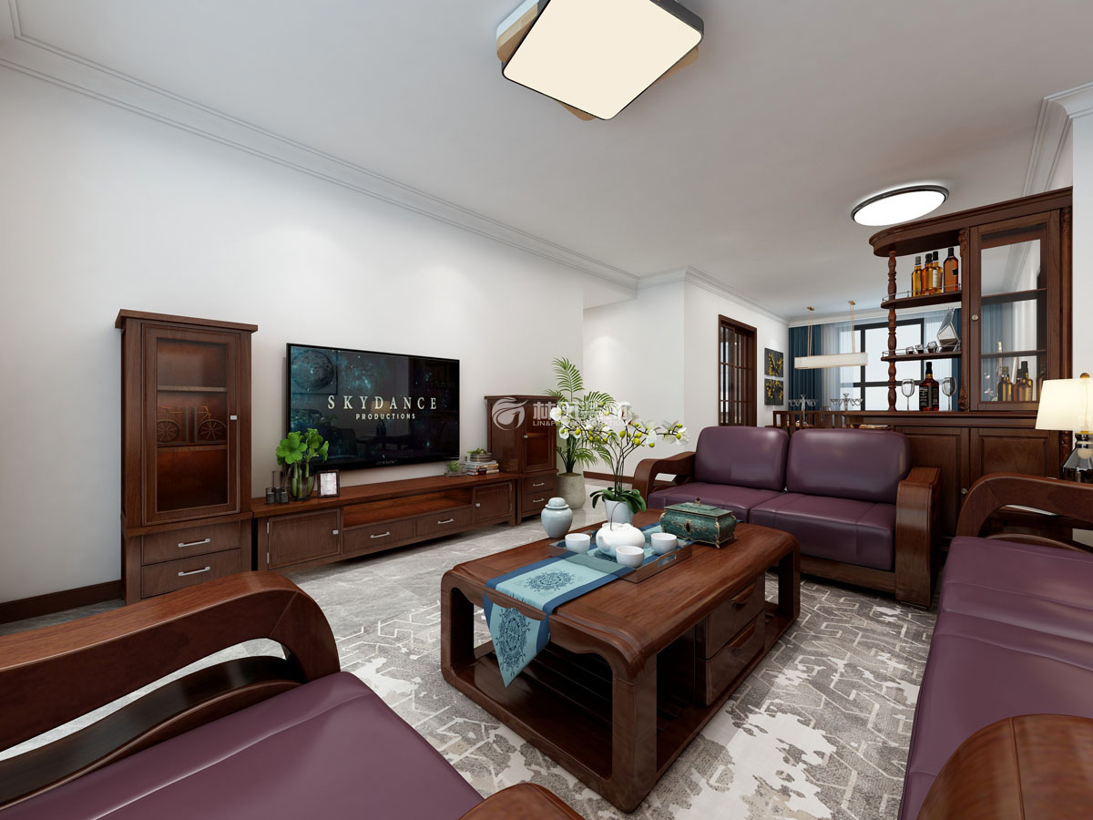 三室两厅一厨两卫,高层整体采用美式风格,色调以深色为主,体现美式的居家感和温馨感。