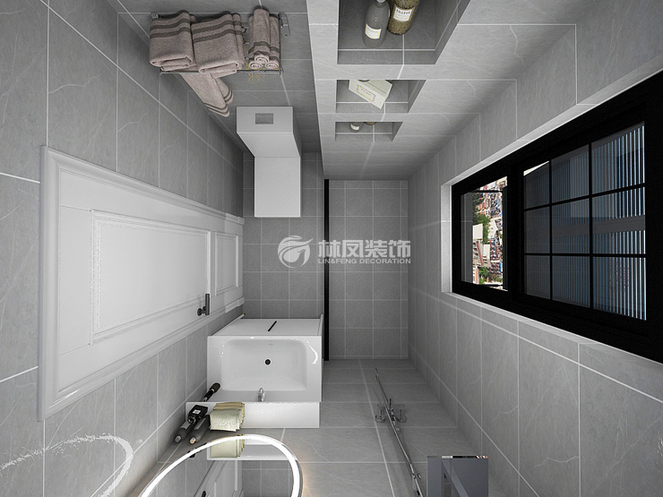 华强城105平2居室北欧风格林凤装饰的卫生间墙面以灰色理石纹理为准,搭配白色洗漱柜,空间显得干净,时尚,干湿分离的设计让卫生间的使用率得到放大,不会因为同时使用而显得拥挤。增加洗漱去壁龛省去了五金挂件,美观实用。