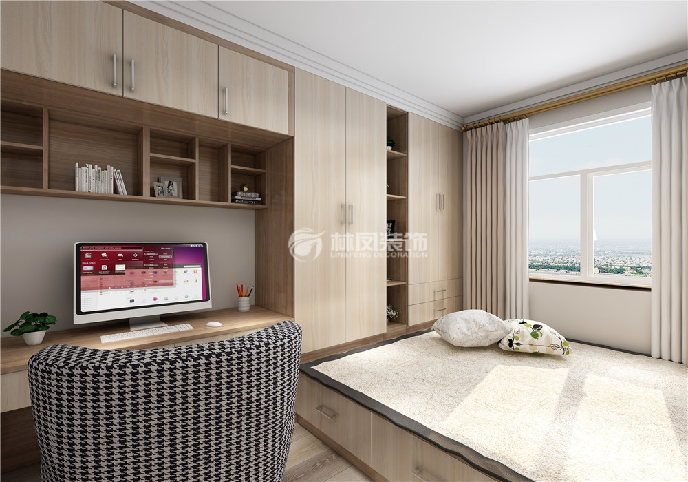 【主卧室说明】卧室是休息的地方,空间不必太明亮,浅咖色硅藻泥搭配原木色榻榻米,整个空间非常舒适,也比较容易入眠,达到了业主想要的效果。