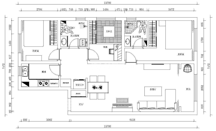 客户是一名成功人士,对于家的执念就是简单干净,客户衣服比较多,所以把每个空间都做了大衣柜,并且融入到设计里