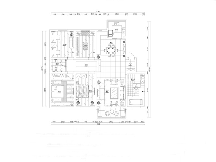 三室两厅一厨两卫,高层整体采用美式风格,色调以深色为主,体现美式的居家感和温馨感。
