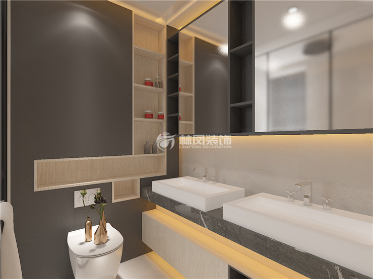【主卫生间说明】卫生间是美观与实用的结合,暗藏的设计手法把每份空间都利用的完美无瑕,而且效果很好。