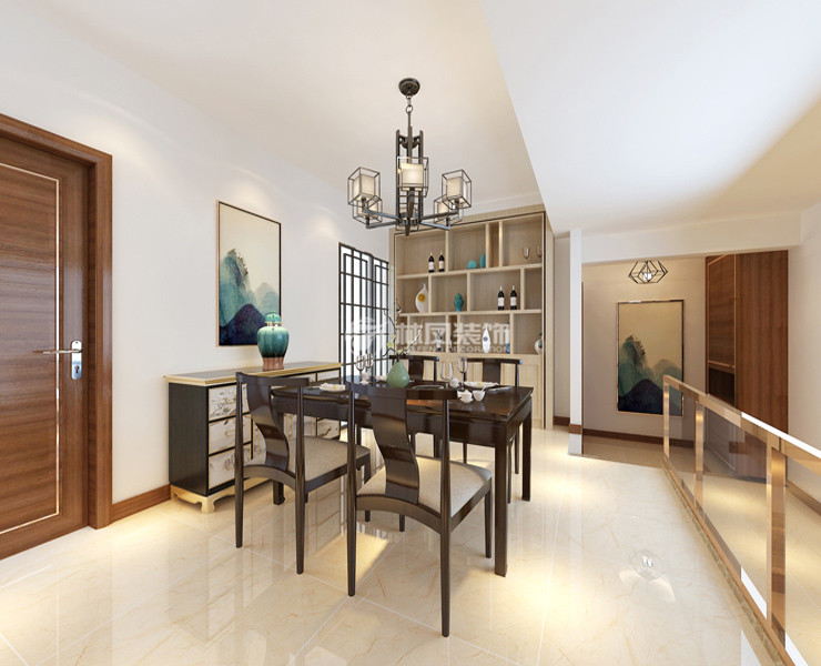 红田翠园139平三室两厅新中式风格林凤装饰的餐厅是一家人吃饭的地方,所以在设计方面上主要还是简单一些,不需要太多的造型进行装饰,在餐桌旁摆放餐边柜,方便了业主的生活,增加了储物空间,可以放酒杯等等一些琐碎的物品。让餐厅更加的干净整洁。