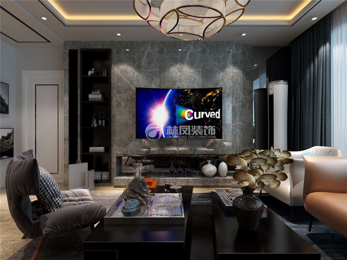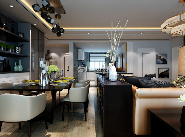 华润置地长安里158平四室两厅现代风格林凤装饰的房主对房屋的需求为改善用途,所以无论对格局还是色彩方面都有一定的考虑和要求,整体棚面采用边棚设计,不但能保留较高的举架还能搭配黑钢,让线条感更加灵动,背景墙采用大理石搭配储物隔板设计,彰显奢华大气的同时又能体现一定的功能性,而整体配色以及材质的选择相对比较考究,因为轻奢风体现奢华的同时又要有一定内涵在,所以配色方面采用黑白灰的同时不乏单调,利用皮质的质感,和爱马仕橙的跳跃性色彩,成为了整体环境的亮点和灵魂所在