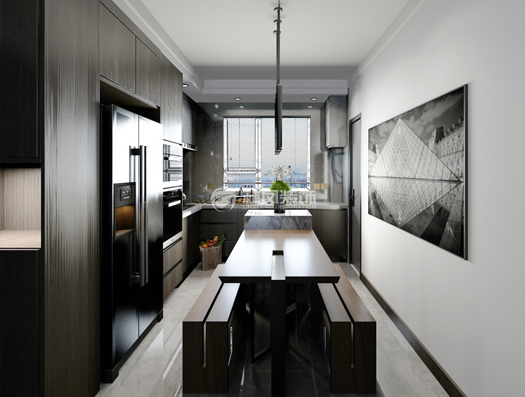 碧桂园大城印象120平三室两厅现代风格林凤装饰的厨房岛台也增加了厨房的台面操作空间,U字形的过道设计,就算是朋友一起在厨房帮忙也不会觉得过于拥挤。蒸箱烤箱电器选择嵌入到冰箱旁的高柜中,因为考虑到女主人的腰不好,若是按照传统意义上嵌入到橱柜下柜中,后期在拿取东西时,对腰部肌肉要求较高,所以我选择嵌入高柜中,根据女主人的身高,来选择更舒服的操作高度。