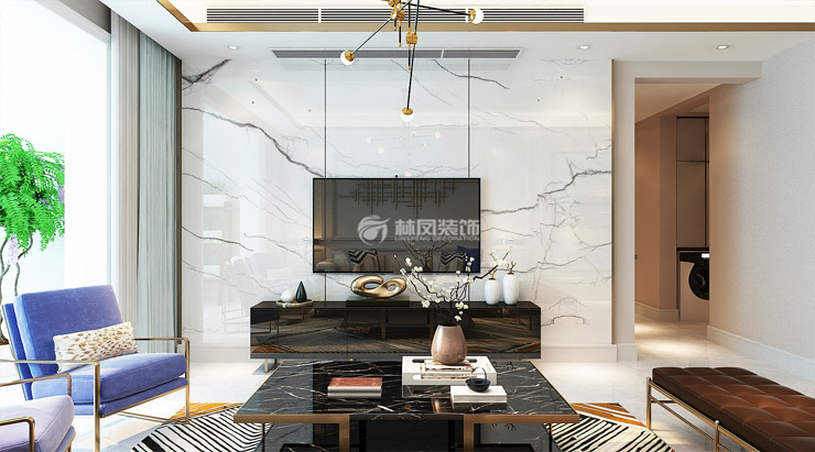 设计理念:本案装修风格定位为现代轻奢风格,轻奢风格是近几年比较流行的风格,本案设计融合了很多现代元素,软装饰搭配丝绒,化纤等工业化材质,饰品摆件以金属边条装饰。客餐厅和厨房为开放式融合设计。