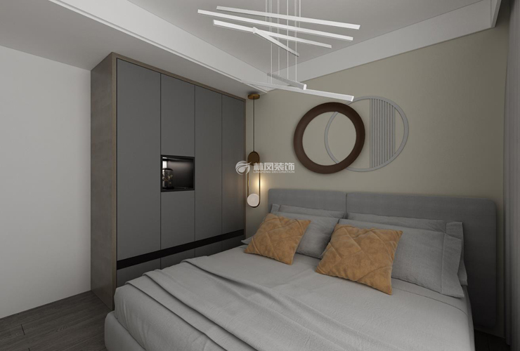 阳光100现代风格140平三室两厅林凤装饰的卧室主要通过软装的结合让卧室完美呈现欧式风格。根据不同卧室的功能需求,采用了不同材质的柜门和颜色,地面地板,让卧室显得更加温馨