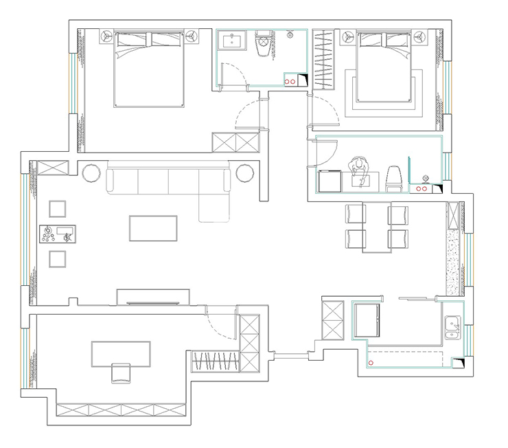 设计理念:业主夫妻二人都是上班族,平时工作比较忙。设计的重点是空间的合理布局,整合更多的收纳空间。整体色调以黑白灰为主。