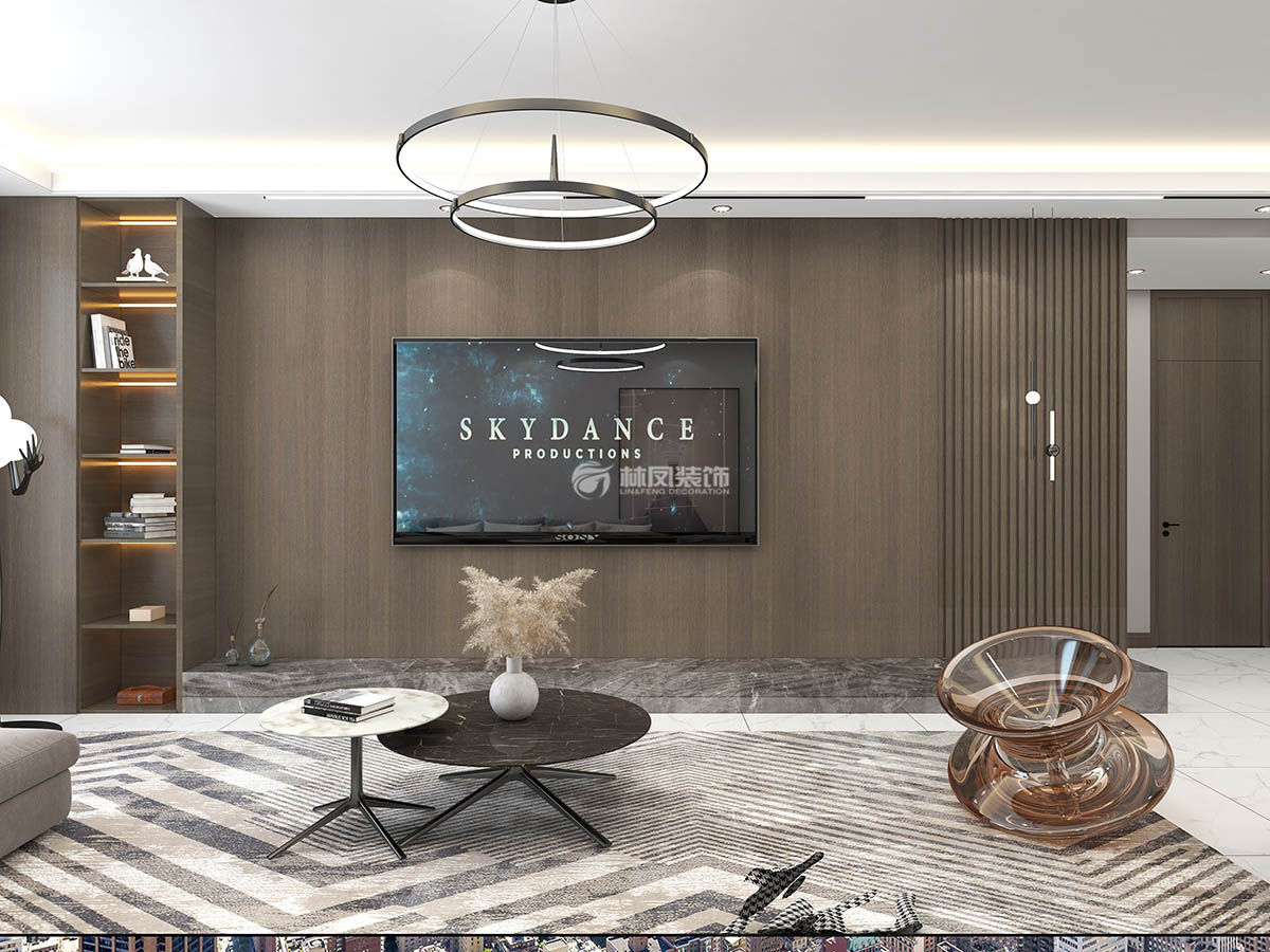 三室两厅一厨两卫,高层整体采用美式风格,色调以深色为主,体现美式的居家感和温馨感。