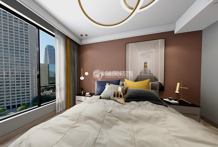 卧室墙面采用硬包形式,白色板材与墙面白色乳胶漆完美衔接,窗帘盒与吊棚石膏线连在一起,不会显得啰嗦,窗户高而宽阔,给人放松感与舒适感