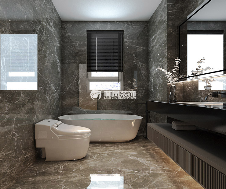 卫生间说明:通透的地墙结合,一切井井有条,黑白的色彩在密闭的空间中流淌,卫浴的经典和极致与石材的冷酷相碰撞,线条和折角融入碰撞中,一切都在表明业主不喜欢繁琐又追求高端的专属性。