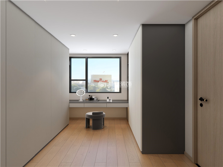客户是一名成功人士,对于家的执念就是简单干净,客户衣服比较多,所以把每个空间都做了大衣柜,并且融入到设计里