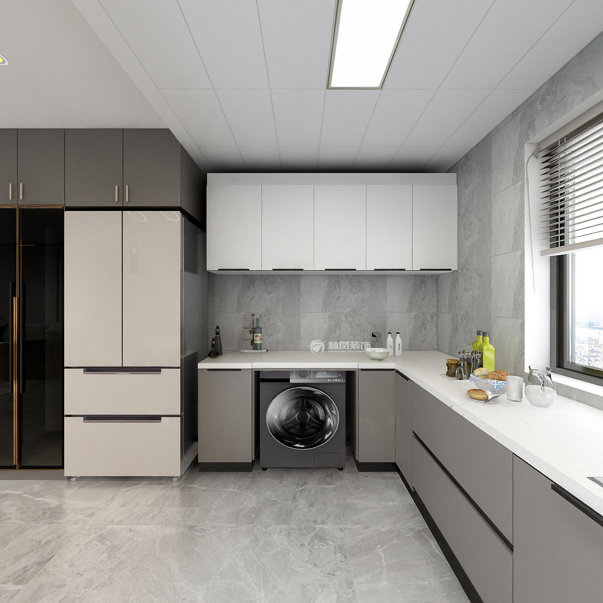 厨房说明:满足洗切炒的功能外,尽量储物多一些,开放式厨房配色与客厅衔接