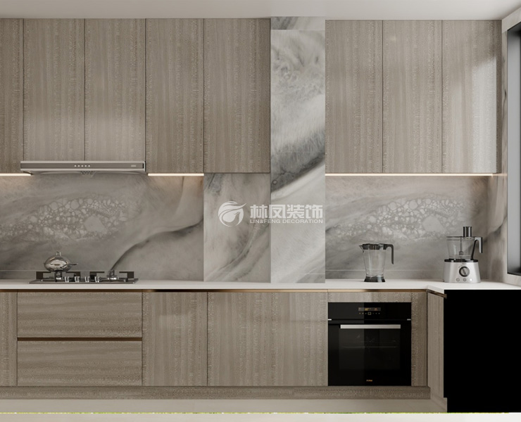厨房说明:开放和餐桌链接,橱柜使得厨房的储物及摆放更为突出,体现厨房最大的利用价值,双开门冰箱能给客户带来更加便利的生活享受