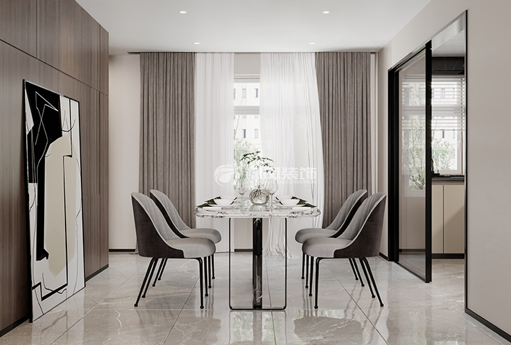 客餐厅空间:以“极简”为核心,达到“简约而不简单”的效果,是设计师用简单到极致的手法将设计融入生活,用简单的材料达到所需功能,是纯粹美感的提现。