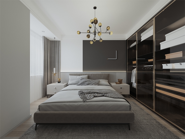 客户是一名成功人士,对于家的执念就是简单干净,客户衣服比较多,所以把每个空间都做了大衣柜,并且融入到设计里