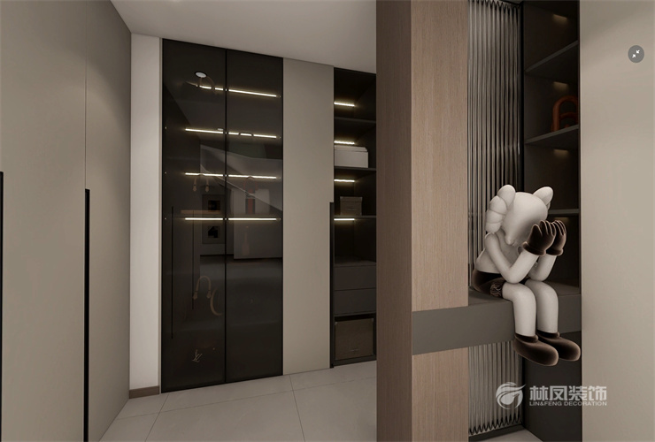 客户是一名成功人士,对于家的执念就是简单干净,客户衣服比较多,所以把每个空间都做了大衣柜,并且融入到设计里