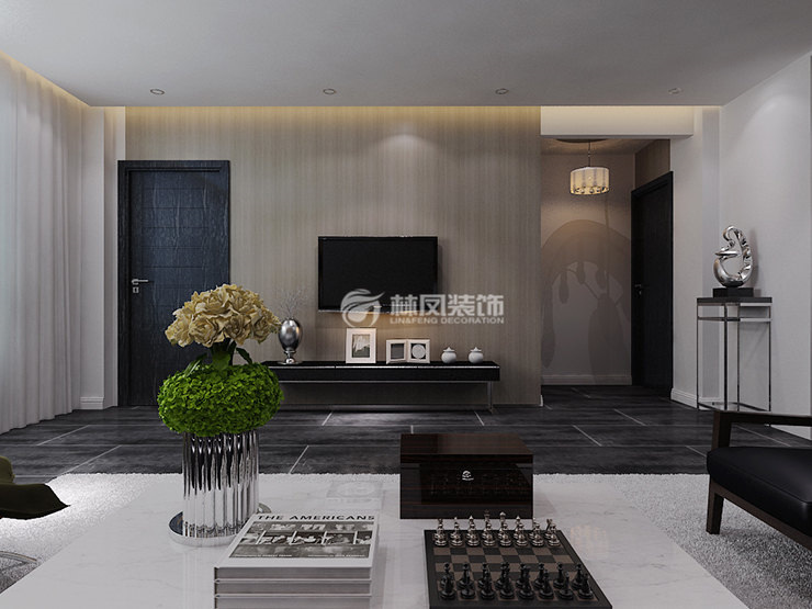 设计理念:本案采用后现代风格设计,着重突出对于现代风格的逆反心理以及重色,深色,黑色的表现,着重突出线条和质感。