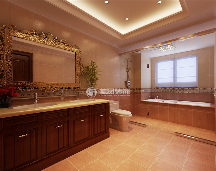 大面窗户采光让卫生间显得更开阔明朗,干湿分区,合理利用包管位置设计壁龛,增加储物空间,摆放绿植也是很好的选择
