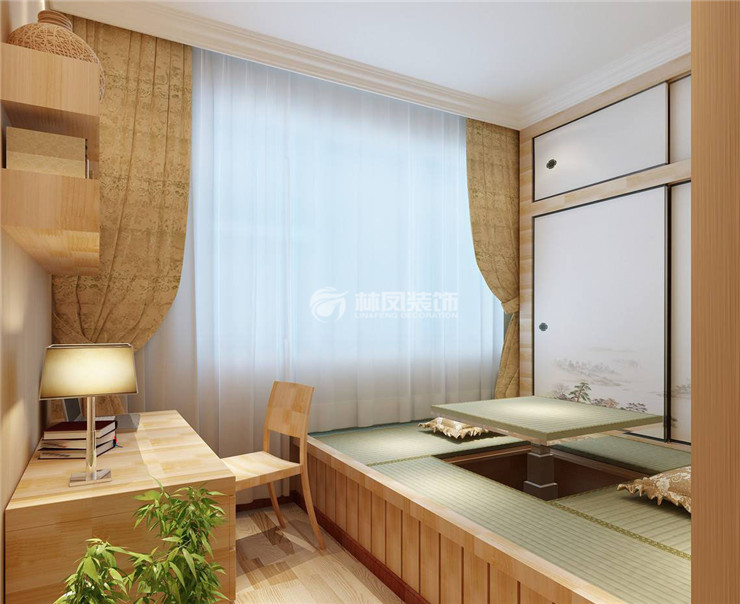 客厅在功能方面是会客娱乐休闲,整体的客厅设计象征着主人品位。深色地毯的搭配让整个客厅在开放式中似乎又与餐厅相区别开来。简约大方的木质阳台设计,搭配上显眼的绿色植物让整个客厅呈现出一种生机勃勃的自然美。