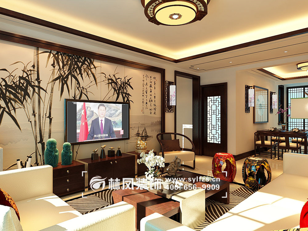 设计理念:中式风格是近几年最流行的一种风格,整体造价要比中式和欧式低很多,风格感好,性价比高。配色方案主要为深胡桃色,米色,装饰色为中国红、墨绿和钴蓝;材质搭配为实木,粗亚麻布料和白瓷。
