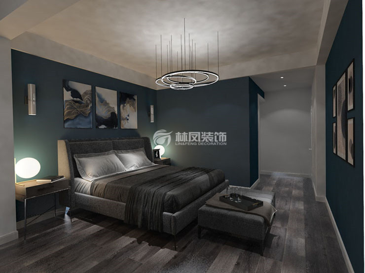 三室两厅一厨两卫,高层整体采用美式风格,色调以深色为主,体现美式的居家感和温馨感。