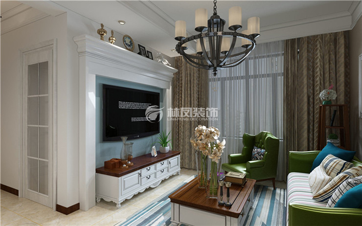 设计理念:本案为美式的设计,为了不影响本来就很小的空间感,棚面没有做大面积的造型。