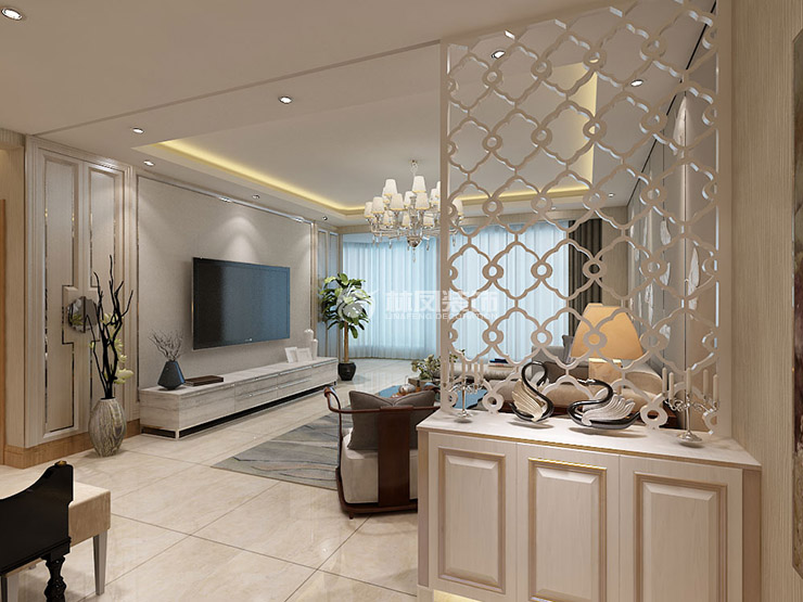 对色彩要求设计师有这独特的要求,不只局限与颜色上的搭配,而是体现对生活热爱,和对生活对家庭的态度,护墙板的电视背景墙搭配镀铬的装饰线条来体现现代风格最原始的美。略带中式风格的咖色沙发使人眼前一亮。墙面装饰不仅在色彩的互补,在与门套线和地脚线上下呼应的完美结合同时也勾勒出了人们对家的渴望。
