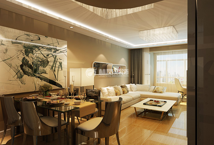 设计理念:本案的设计采用的是现代与港式综合的设计风格,总体深浅颜色搭配提供了整体的高级感,简洁与大气完美结合,开放式的厨房与整个大厅连接的开放式结构使整体非常的通透。简简单单,朴朴素素,落落大方