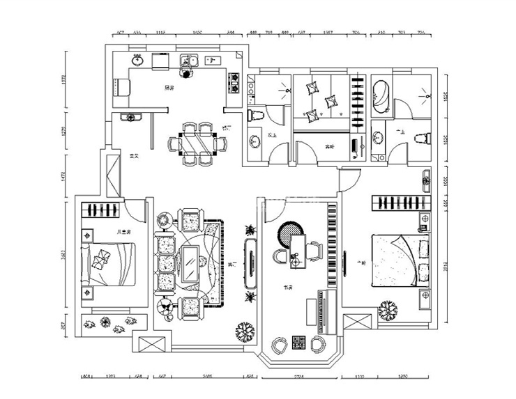 三室两厅一厨两卫,高层整体采用美式风格,色调以深色为主,体现美式的居家感和温馨感。