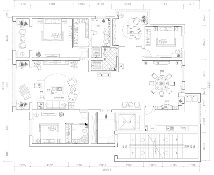 这一户我也是改了好久的方案。从棚到低,从南到北,地面的最终方案并没有选择很常见的斜拼,波打线之类的,是用波打线贯穿的,挺酷的,有壁灯有台灯,相互呼应,颜色也并没有因为业主是个女孩子就特别鲜艳跳跃,建议还是选择了成熟内敛的。客户接受了、