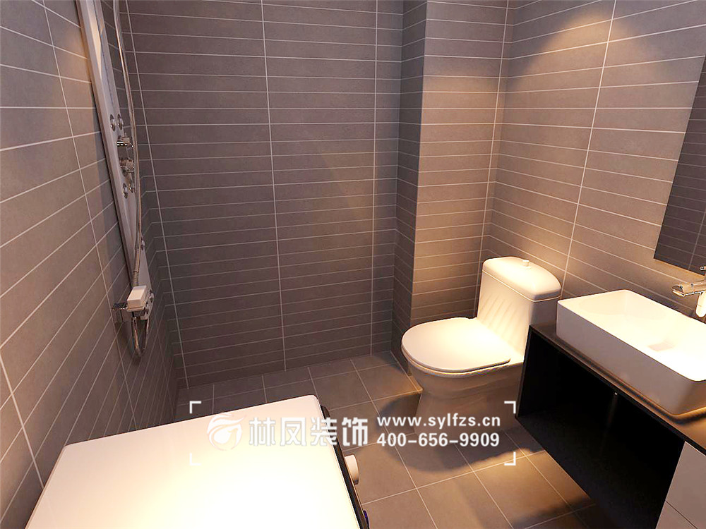 高级灰的质感墙砖加上机器刨槽的特殊工艺,现代感超强,亮色的光源形成鲜明的对比。