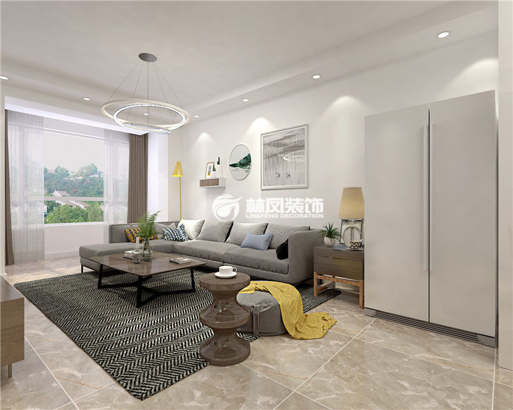 北欧风格的客厅自然以舒适和温馨为主,整体色调统一,以及通过线条的运用,将室内营造一种自然地气氛,使客厅更加轻松惬意。