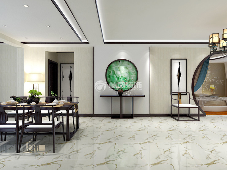 配以一些简约的造型为基础,添加了中式元素,使整体空间更加丰富,大而不空、厚而不重,有格调。